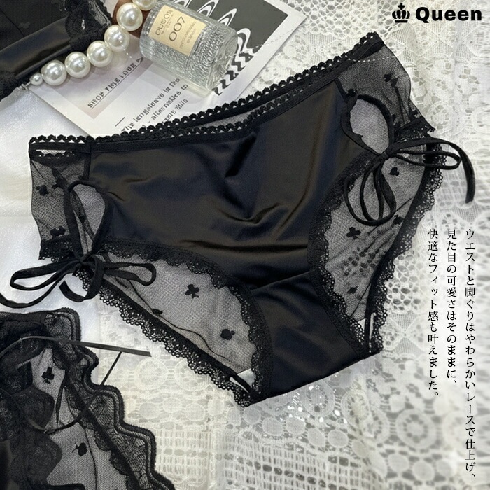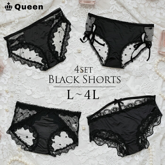 ブラックレースショーツ4枚セット 大きいサイズ レディース Queen (sb4set)