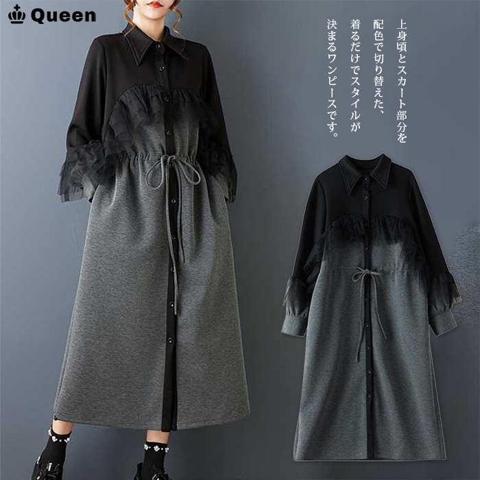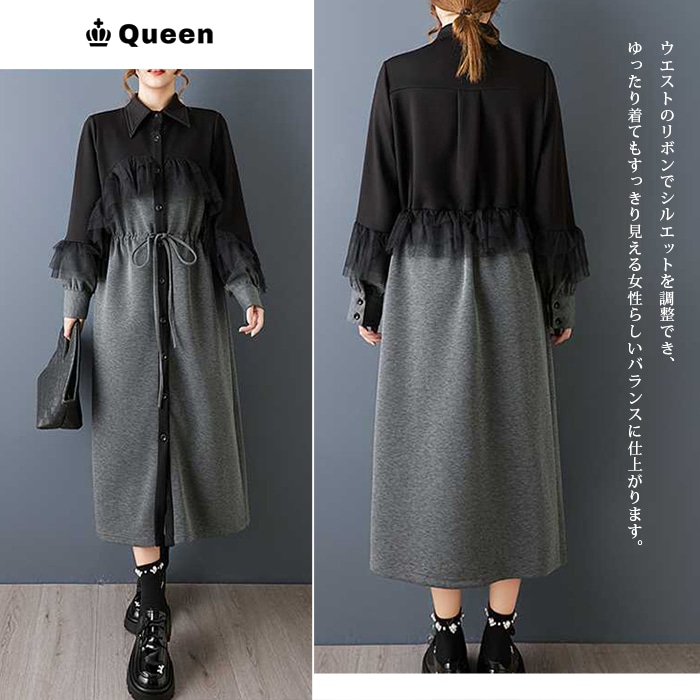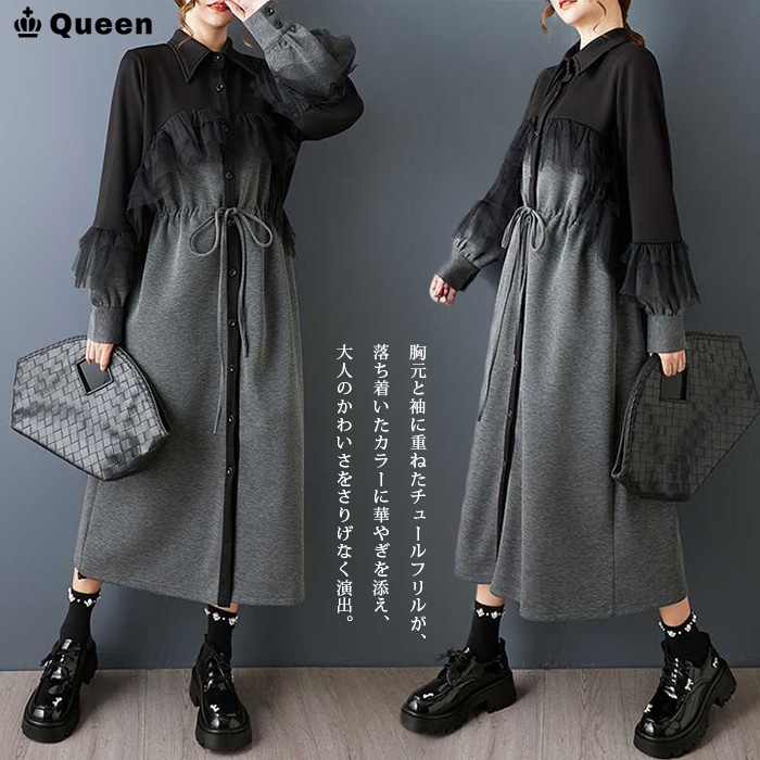 チュール使い切り替えワンピース 大きいサイズ レディース Queen (478573)
